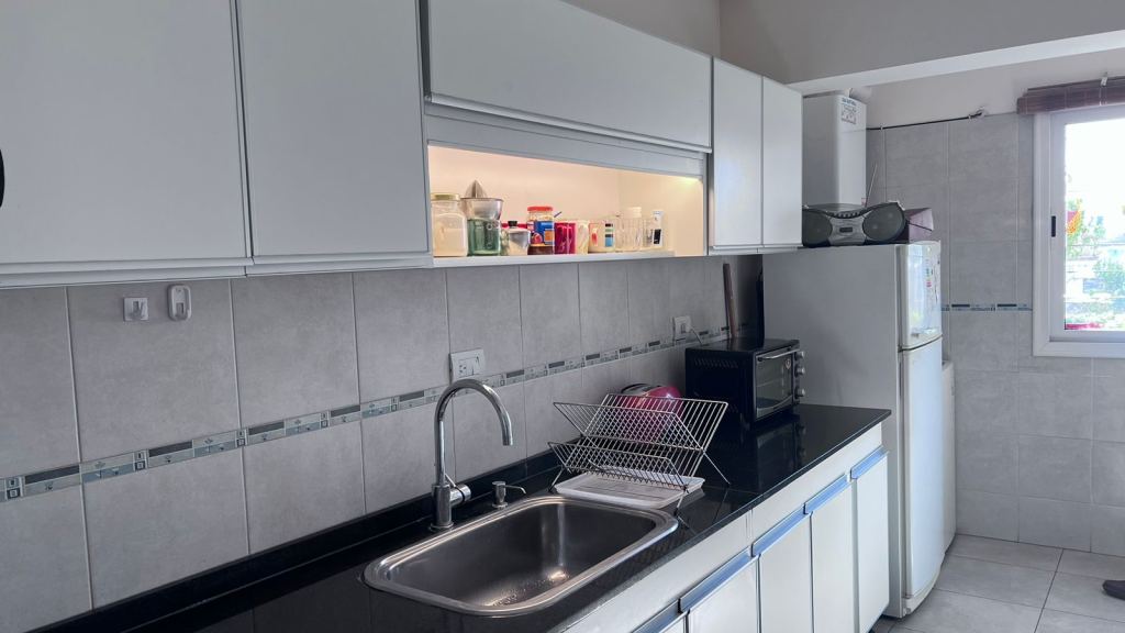 Amplia cocina independiente, ingreso de luz, totalmente equipada con caldera, mesada mármol.