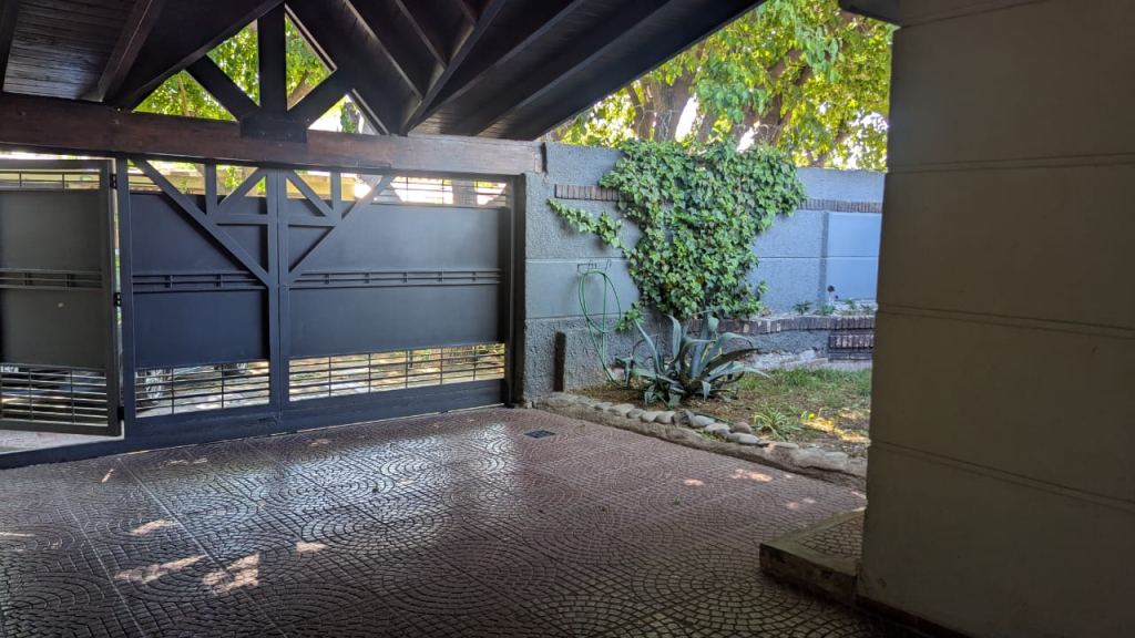 Cochera techada para dos vehículos, portón corredizo con posibilidad de automatizarlo.